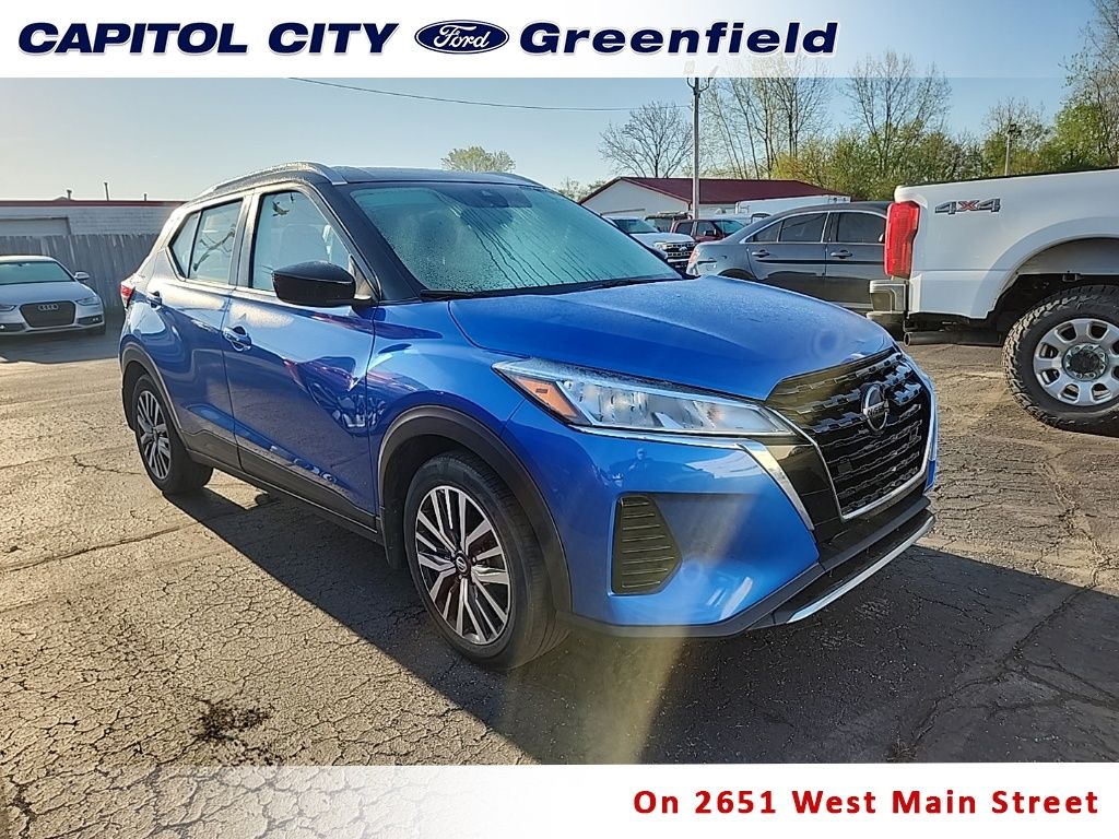 Electric Blue/Super Black 2021 Nissan Kicks SV 1.6L 4-Cylinder DOHC 16V CVT with Xtronic
